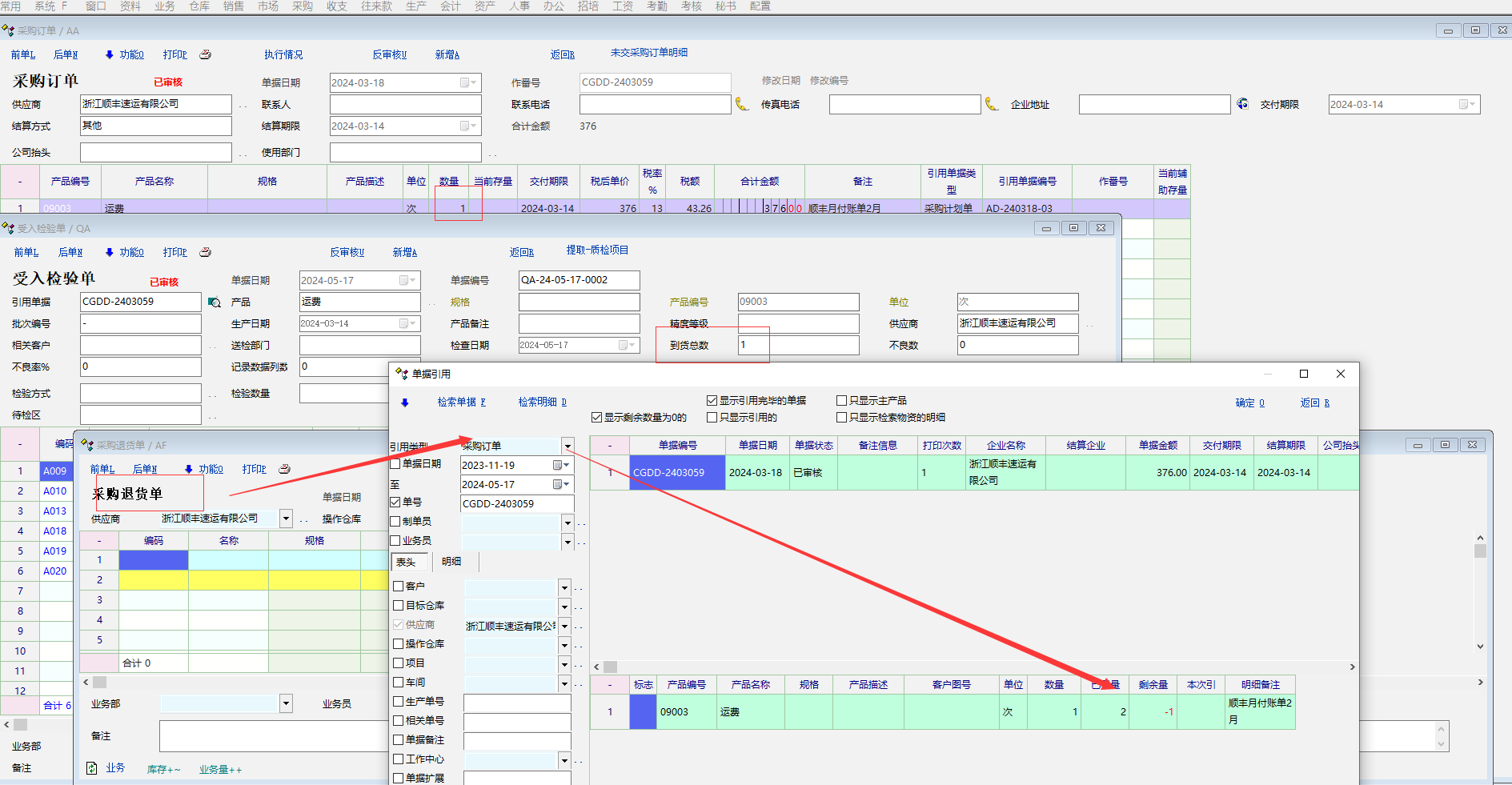 推荐_质检单据和正常单据共同引入上级单据时,正常单据引用界面里引用数量显示异常。_产供销