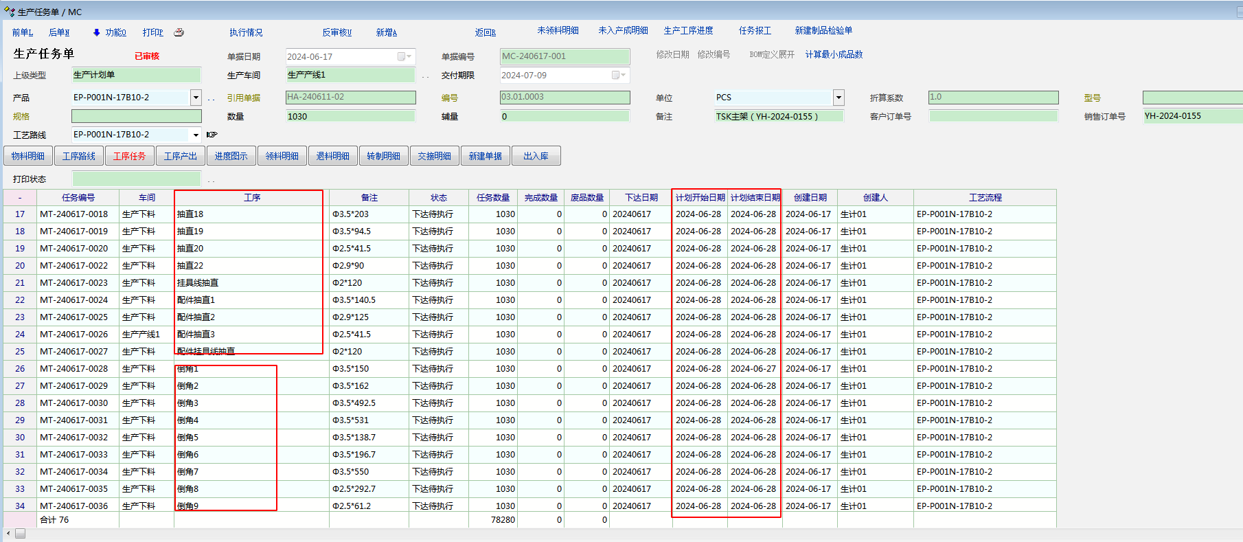 后续版本生产单的任务列表里会增加批量修改属性功能。