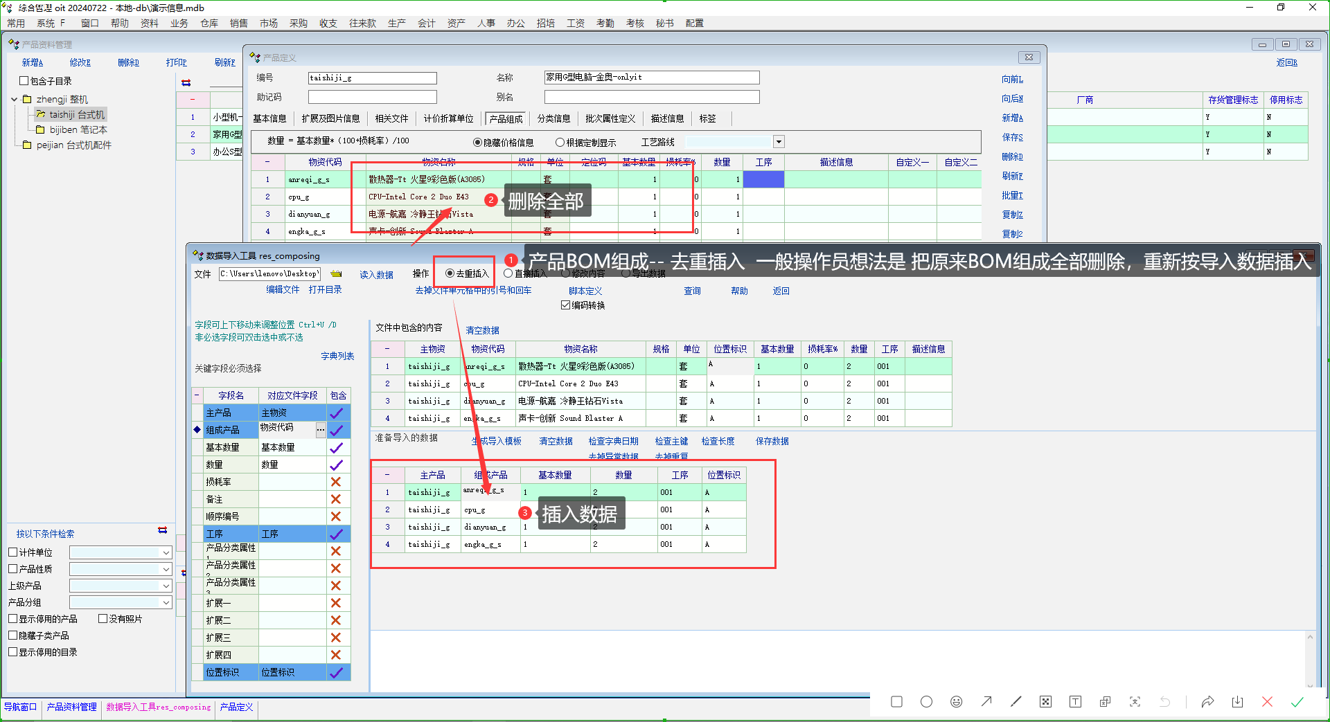 推荐_产品BOM导入 优化-考虑 增加一种模式。先删除原来全部记录,再插入导入记录。现在去重_产供销