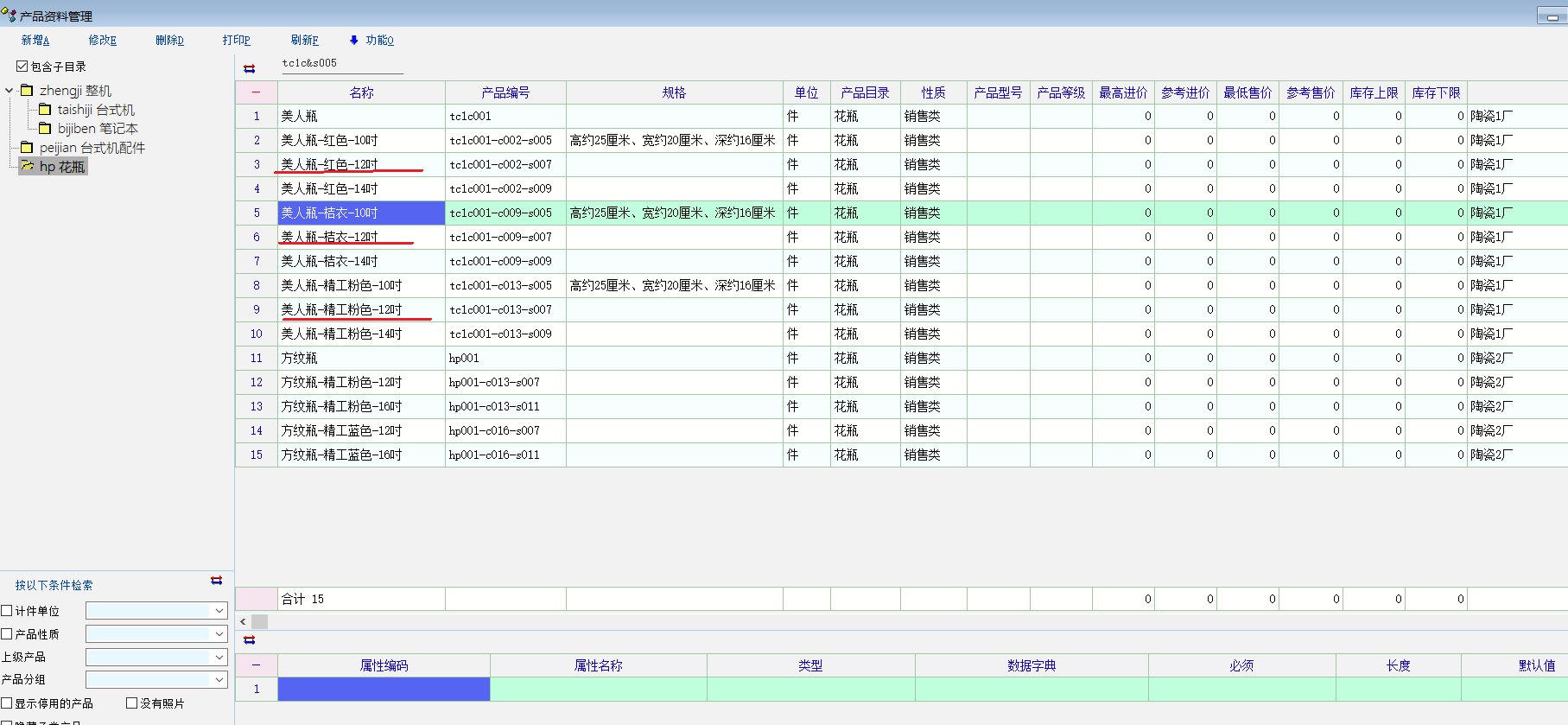 比如,我要对下图12吋的产品批量修改规格,就很难以做到。