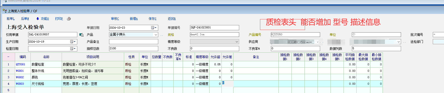 推荐_质检单据 表头能否 增加 产品型号和描述信息。_产供销