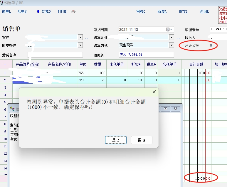 求助_为什么会出现表头合计金额和单据合计明细金额不一致的情况?_产供销