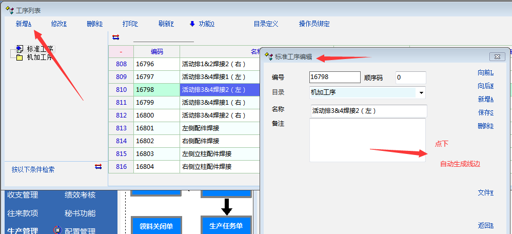 2、刚刚启用工序的,希望直接在工序里面添加“自动生成线边仓”按钮,点一下自动生成这道工序线边仓。