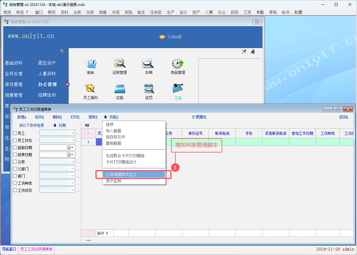 需要将工伤资料通过脚本批量同步到员工资料的扩展属性中.