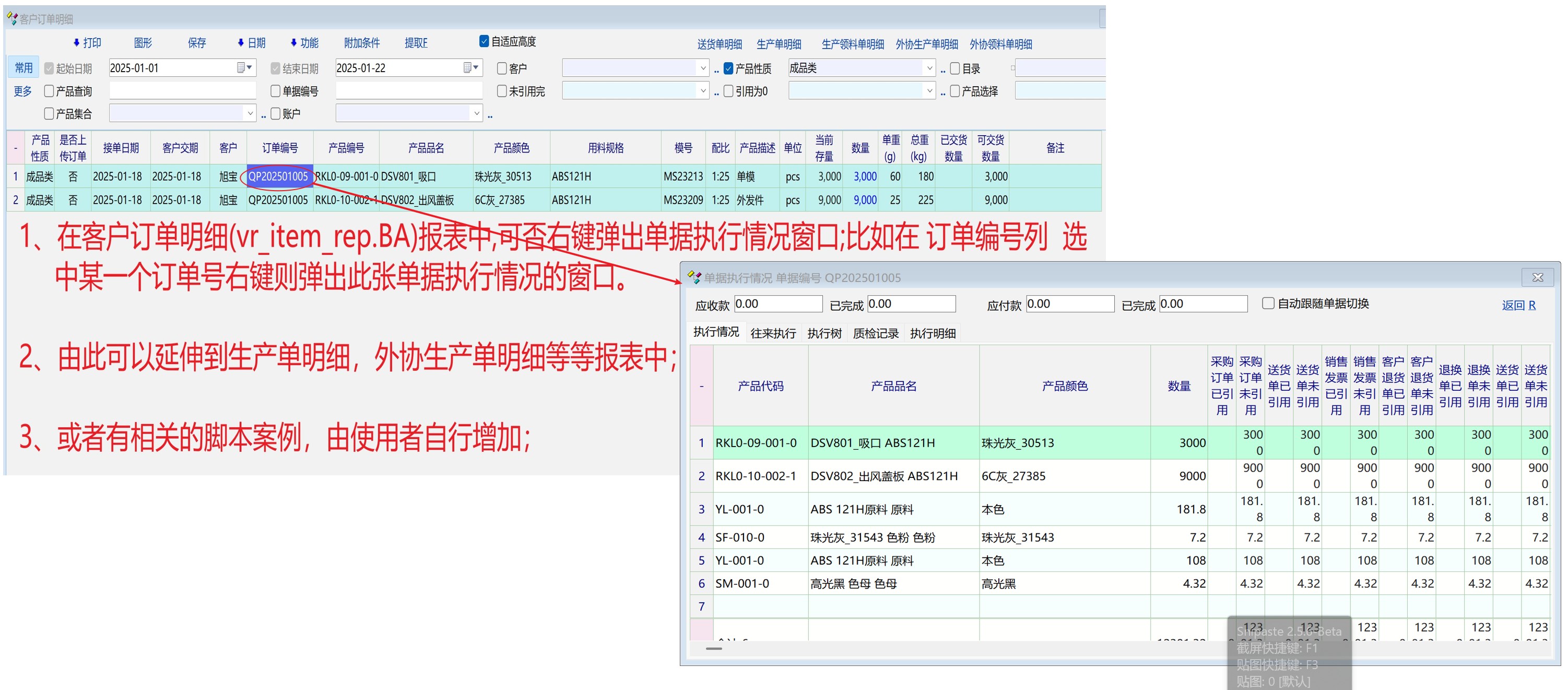 讨论_在客户订单明细报表中可否右键弹出 单据执行情况的窗口_产供销