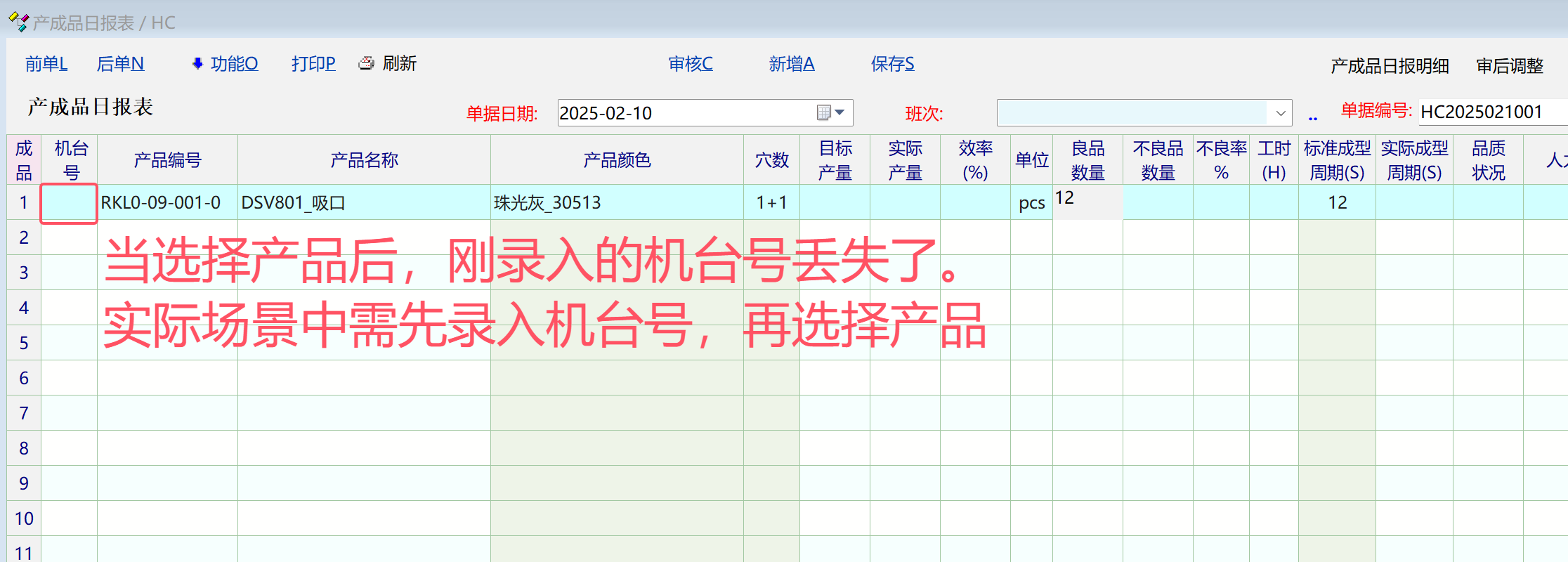 求助_表单第一行第一列录入数据后,再选择产品时刚录入的数据丢失_产供销