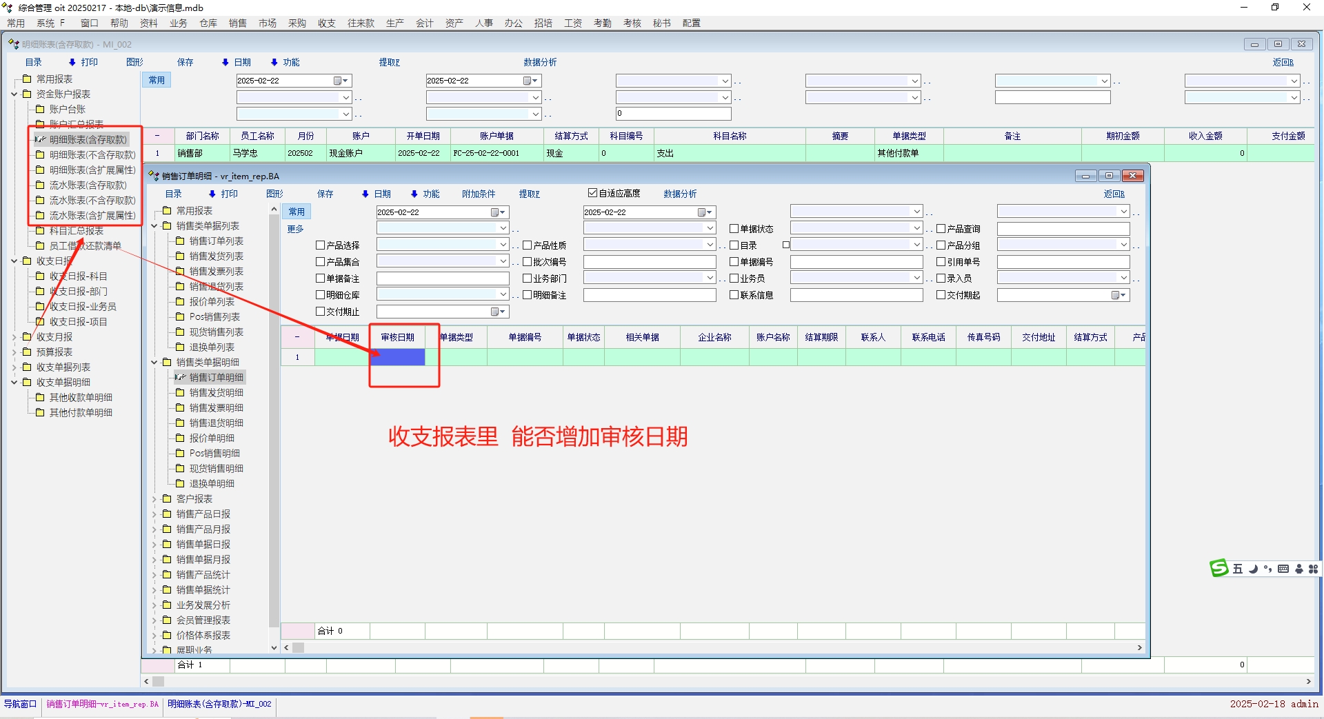 收支报表里 能否增加审核日期