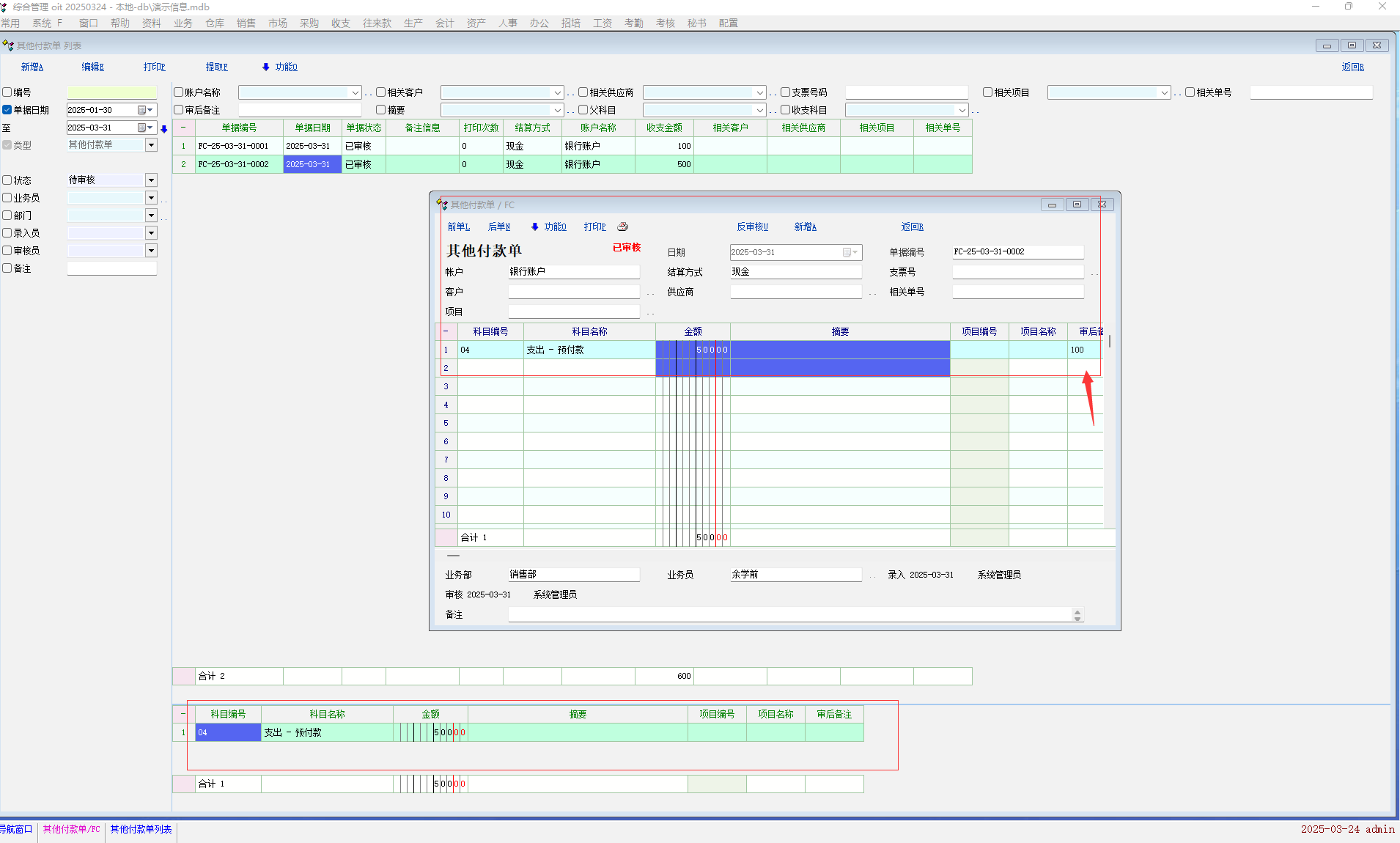 单据的审后备注在点击前后单后显示异常