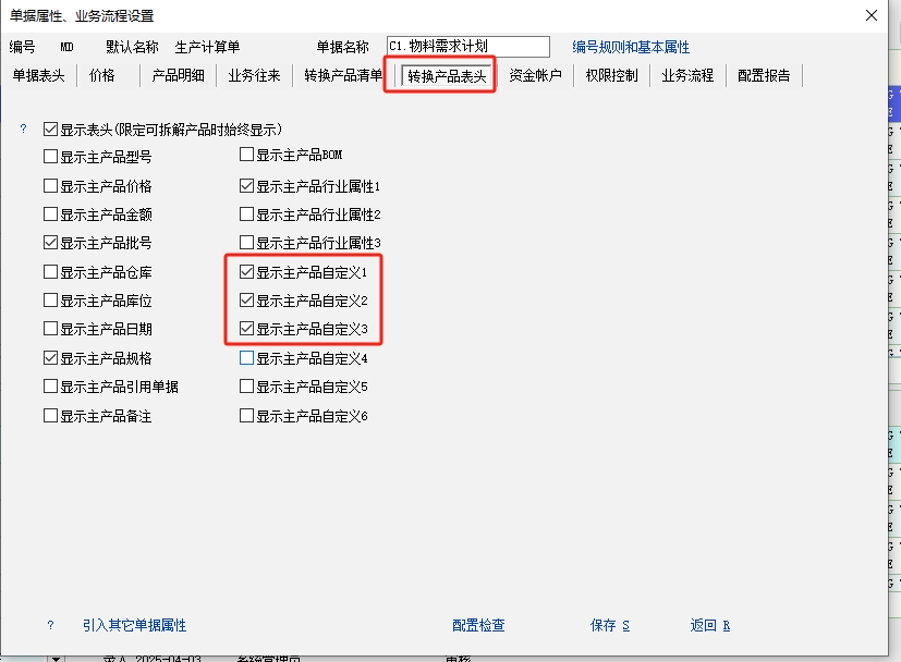 叶子老师,另请教,转换产品表头,勾选表头自定义,怎么给这自定义设置属性-数据字典型