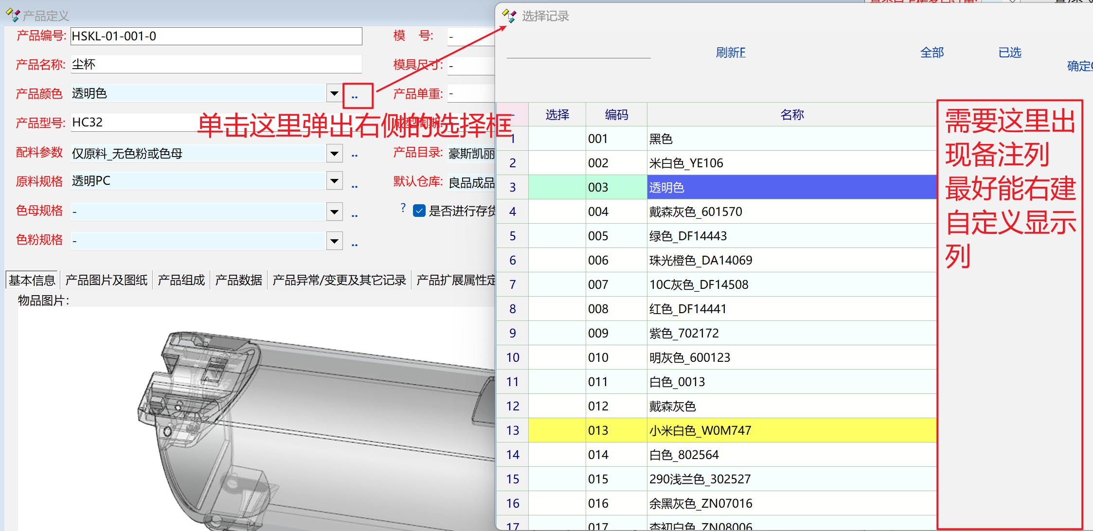 求助_在产品定义中将扩展属性定义为字典型,当在选择...时能否有显示定制功能_产供销