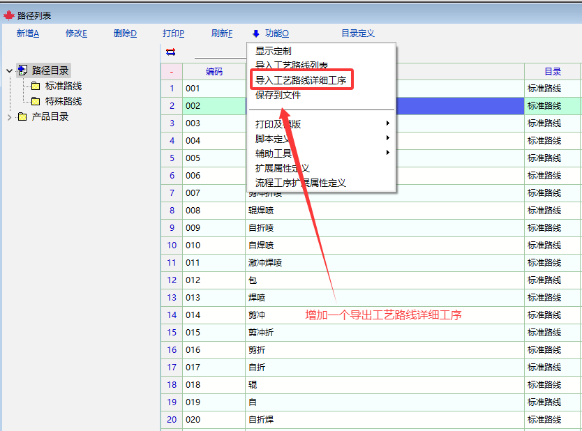 目前系统中只有工艺路线详细工序导入功能,没有导出功能,建议增加