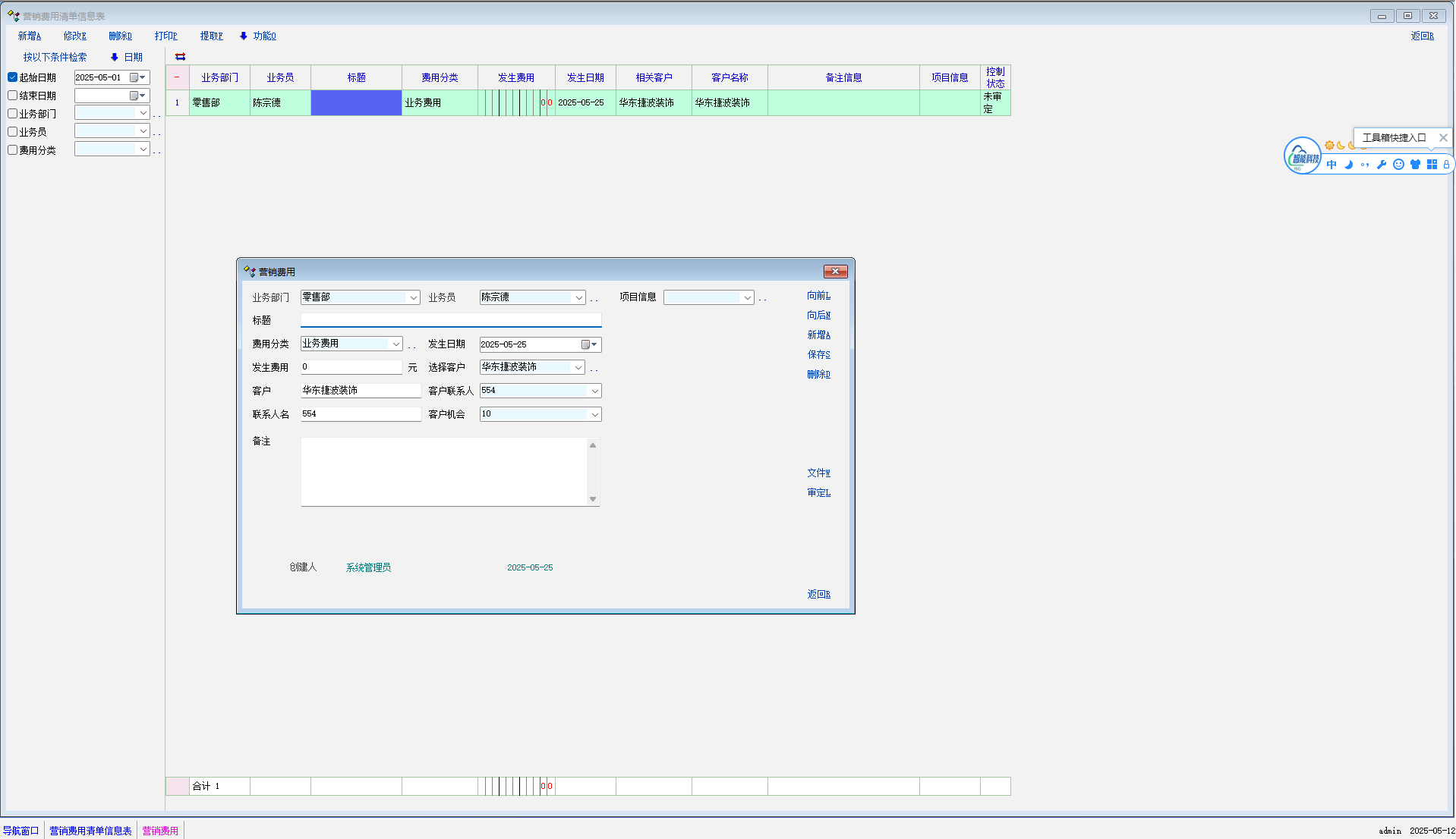 5:建议客户分类信息增加费用显示