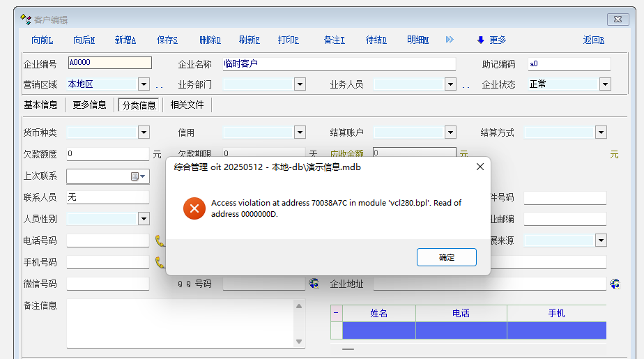 升级到20250512版本 客户卡片点击分类信息弹窗报错