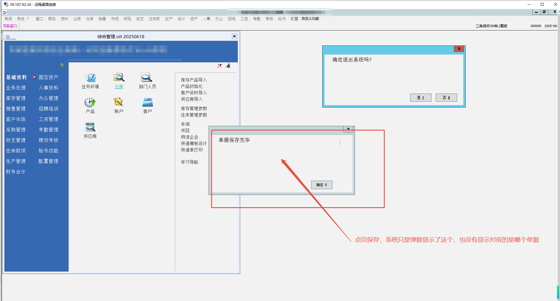 双击是可以关闭,但是退出系统的时候,才提示,该保存的单据,只是提示,但是,没有提示是哪个单据,也没有弹窗提示是哪个单据  。