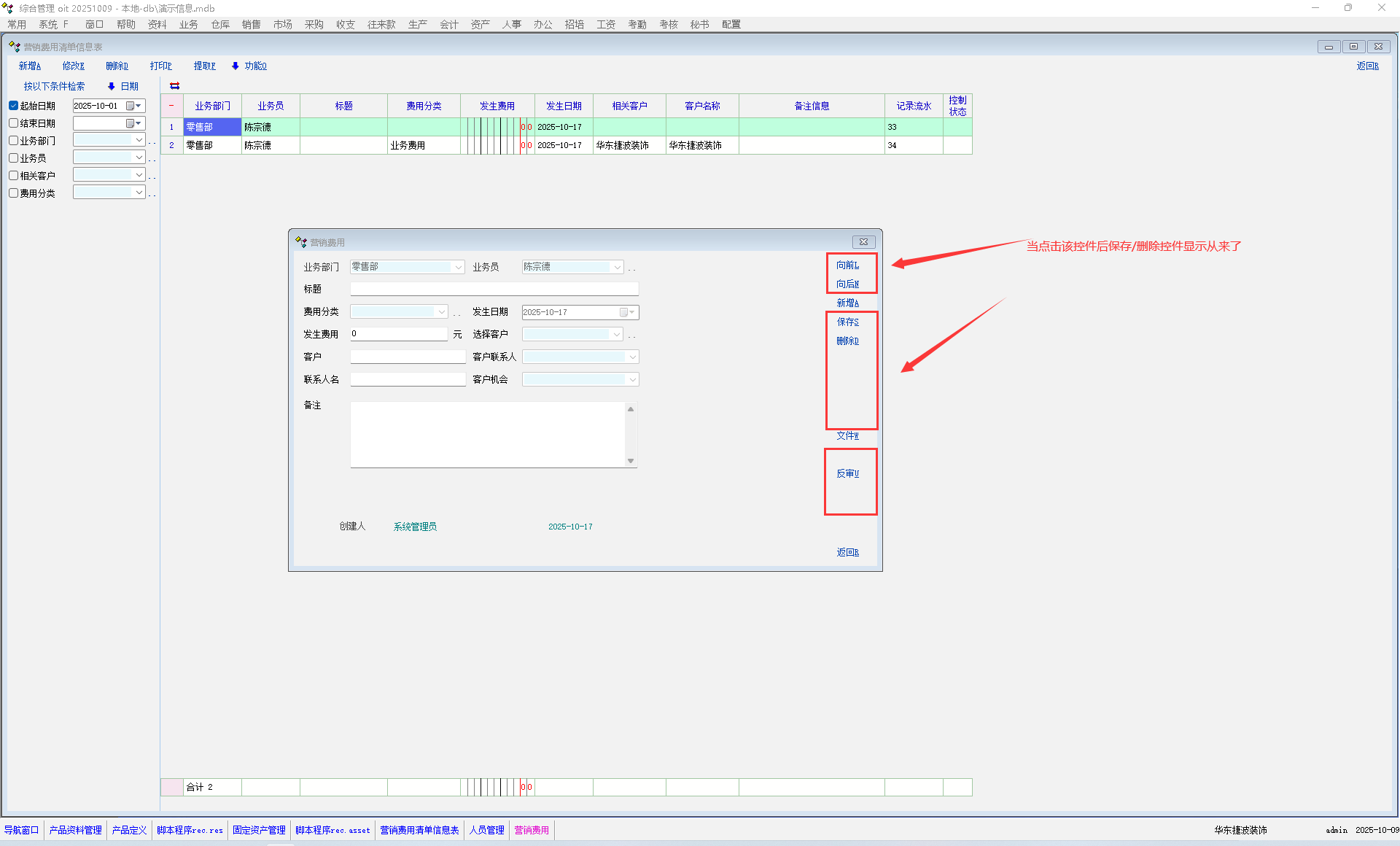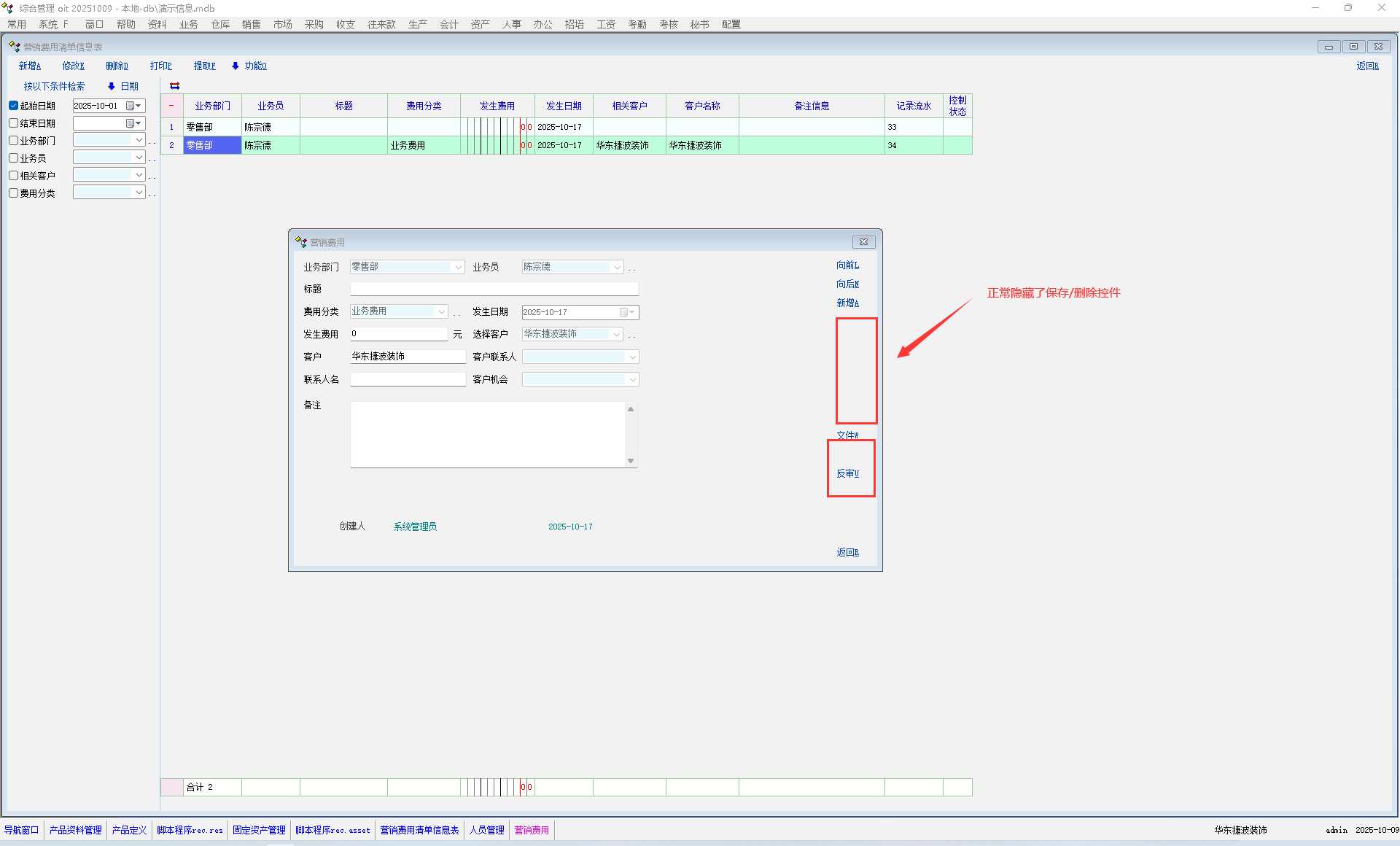 营销费用保存审定后保存/删除控件隐藏