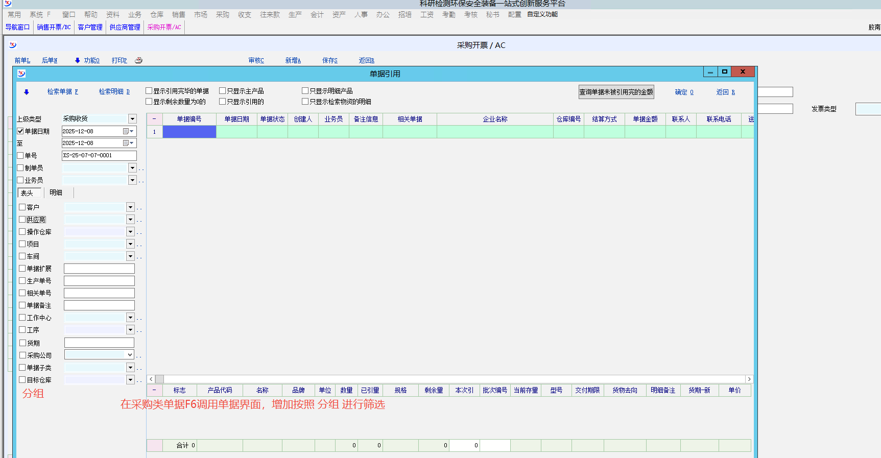 原创_优化建议:在采购类单据F6调用单据界面,增加按照 “分组” 进行筛选,在销售类单据F6_产供销