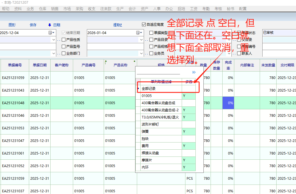 全部记录 点 空白,但是下面还在。空白就想下面全部取消,重新选择行。 |