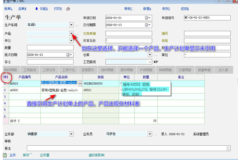 请问,如果《生产计划单》上有多个产品,制作生产单时,只能在表头一一选择产品,即要制作多张生产单吗
