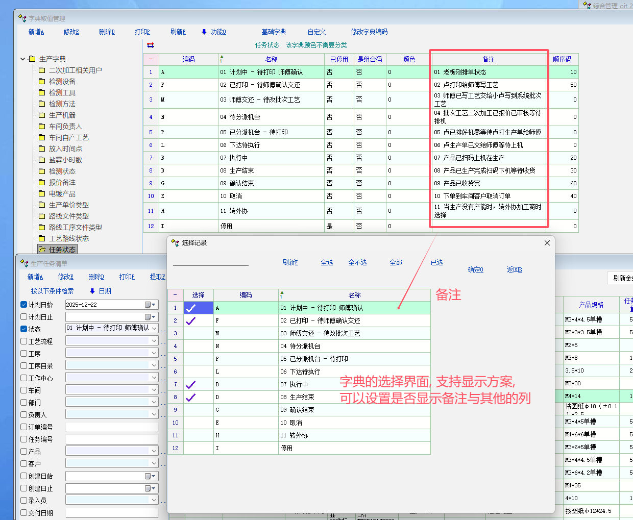 数据字典选择界面, 支持显示方案设置, 可以设置是否需要其他的列.