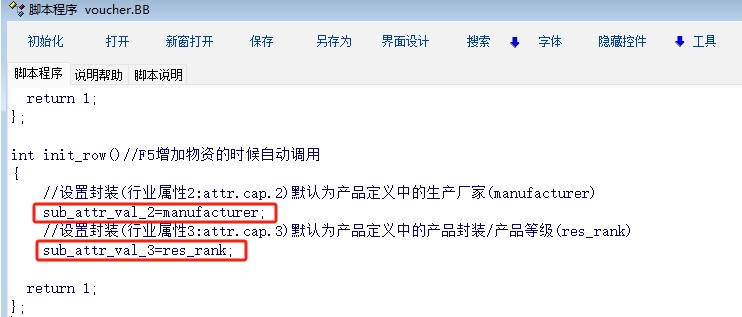 如图所示,原来的脚本能实现注释中说的功能,输入产品时通过脚本把产品定义中的资料自动带入到表格中(一般跟产品定义中一样,有时候也需要做出修改),减少工作量和失误,系统升级到最新版本后就不行了。