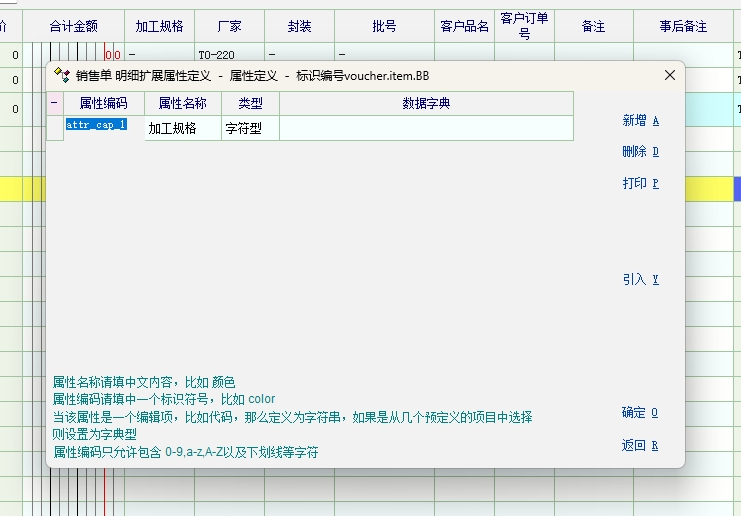 单据明细扩展属性定义的列也可以,就产品行业特性的这几个列不行。估计是新版本系统把这几个变量无意中删除或者限制了。