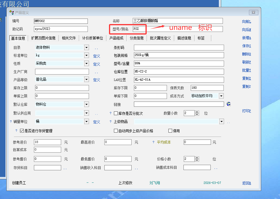 老师,能否在新版本里启用;采购订单-选择产品-列表显示定义中增加uname标识;因为化工行业里面用得比较频繁,同一些列的化学品里面,有很多的型号,每个型号下面还有不同的浓度;用uname这个标识很好区别。