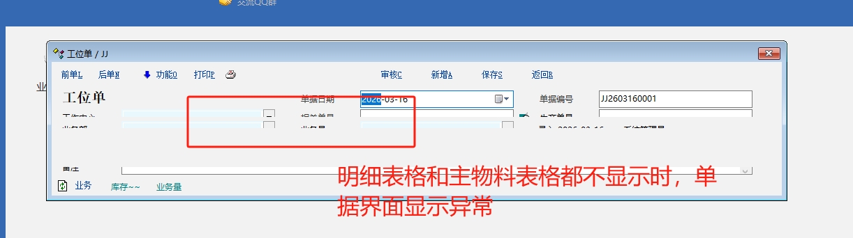 业务定义里  明细物料和主物料都不显示时。单据界面显示异常。