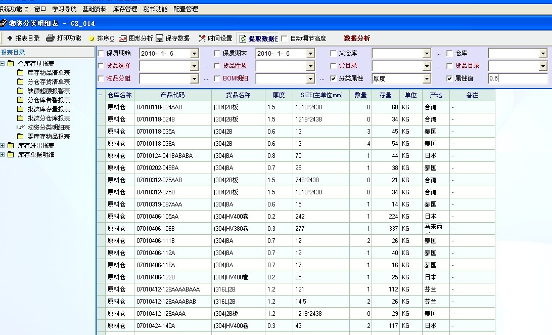 登陆远程服务器,查询库存报表,物资分类明细表,定义属性为属性1(即厚度),属性值为0.6  然后点击提取数据,机子马上就死了。我的是DELL机,四核CPU,电脑肯定没事,而且也换了几台电脑试过,都是一样的问题,客户端版本和服务器版本一致,望尽快帮忙解决一下,