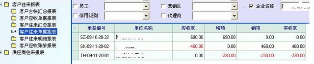 说明:SZ是销售发货单,,SK是收款单,,TH是退货单,,,,总货款是690,,但退货230,已收款460,,那么应该都结清了,,应收帐应为零,,但,汇总时还是显示说有230未收款,,,