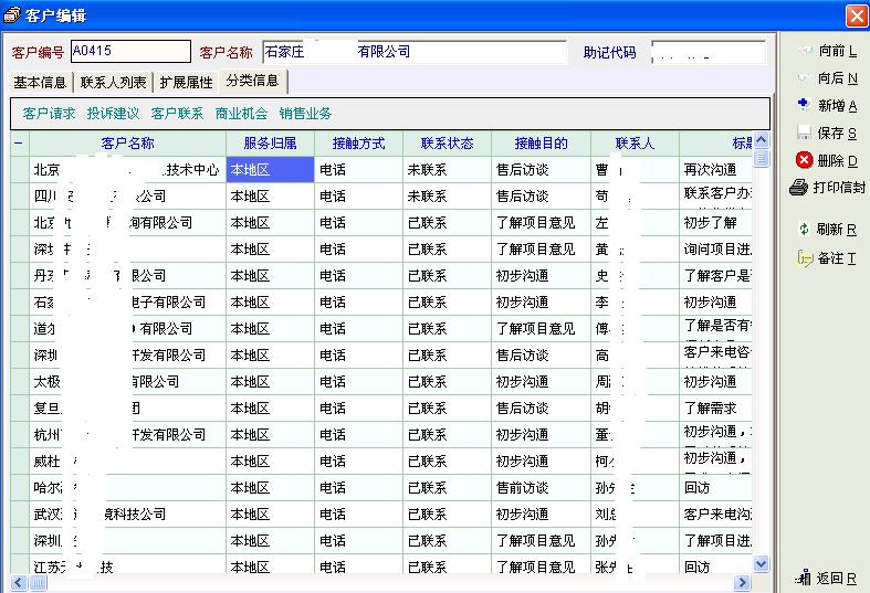 1、客户管理--双击进入“客户编辑”--分类信息--客户联系