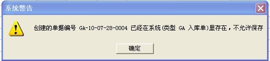 仓管A的帐号为1001和仓管B帐号为1002,同时在入库单模块里填制入库单时,如果日期一样,都会提示如图所示