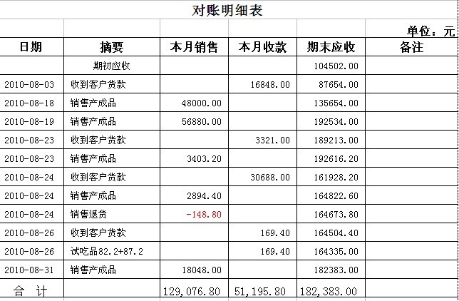核对账目用客户对账明细表,就是最后的一个报表。