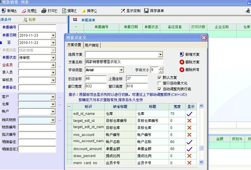 2【销售报表】单据规则里面可以设置联系人,联系人电话,交付地址,实收金额,可是在“F3单据清单”的汇总里面却不能“显示定制”这些信息,希望能根据用户需求设置显示这些资料,,因为有时同为“零售”但是顾客不一样,所以,希望能直观查询哪些顾客欠付货款