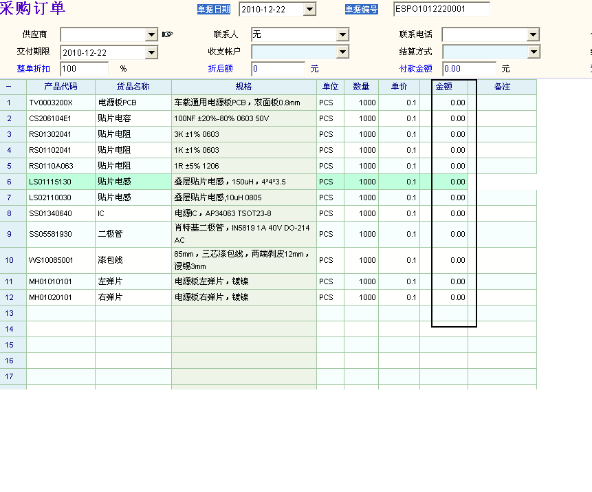 老师,你好,采购订单用导入功能从EXCEL里面导入内容后金额不会自动计算