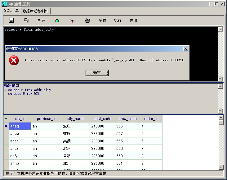 1、SQL语句中不认识大写的SQL关键字。如我手动输入SELECT * FROM addr_city系统会不执行不了。