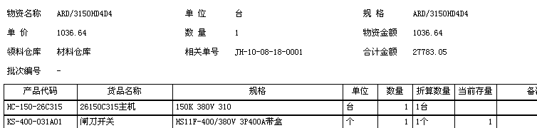 谢谢,已经实现显示全部主物资,只是有一点,如果可以增加就太好了。列表只显示名称,数量,单位等。但如果一个单里引用不同的单据就没办法将相应的单据编号调用。还有那个合计金额之类的也没办法合并。
