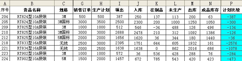 4.出库+库存-销售订单=计划比较