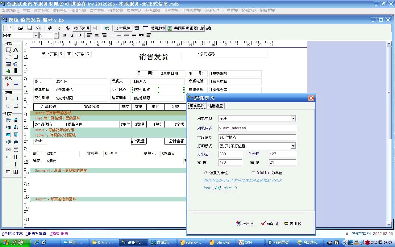 使用的類型: 整型->只能數字 字符->任何字元均可 字典->可以選擇內定的字典或者自定義. 自定義字典操作如下: 1.基礎資料->產品資料->點選"相關字典"->點選"基礎字典"-> 左邊新增一個選項,字點編號字典描述設成"車型"後保存. 2.點選"車型",再點選"新增",名稱輸入"車型A"後保存. 再接著新增"車型B"...等等保存. 3.單據的數據字典記得選"車型". 4.按確定重啟後.在單據表頭中下拉式選單即可看到車型A.車型B等資料. 列印的字段名稱是依擴展的順序編碼. EX:擴展第1個是車架號,則字段名稱即"V_01",第2個車牌號,則是"V_02" *我看到你上傳的圖片,在打印中並沒有出現已設定的擴展資料. (正常如先設定好,再按打印,擴展資料即會自動就帶出.所以應該你在設定前,已有生成打印模板, 所以擴展的資料才沒有同步顯示) 比較快的方式,重新設定打印模板. 1.點選"操作"->參數及配置->生成默認打印模板. 2.點選"打印",即可看到新設好的擴展資料均在打印資料中. |