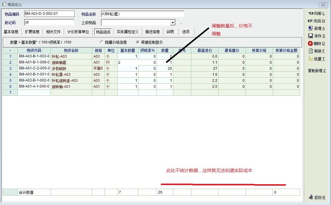 求助_物品的组成不显示成本价格_产供销
