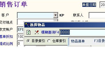 我的建议是在销售订单或现金销售的 选择物品 窗口 的模糊查询时,每进行一次查询,回车后,查询框的内容自动变为选中状态,这样就可以直接输入下一条查询内容,不用删除查询框内的内容。