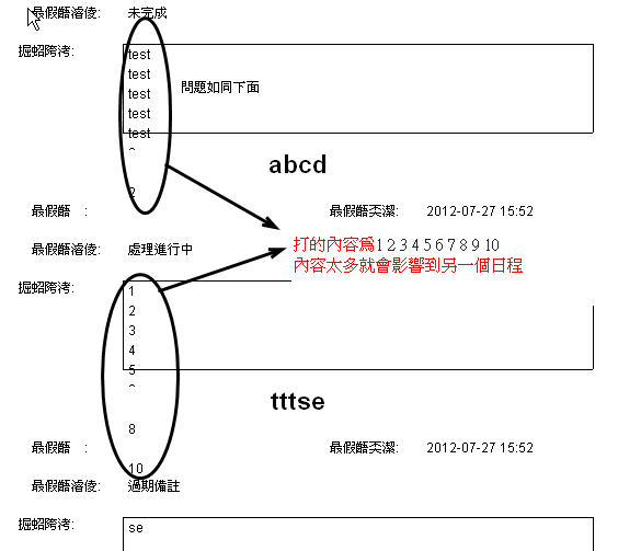 但是.....打的內容如超過預設的行數,就會壓到下一個日程,麻煩請看圖