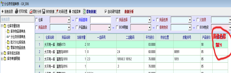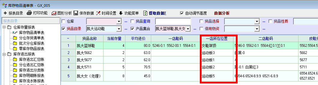 库存物品清单表中也没法通过显示定制查询库存物品库位的信息,不方便! |