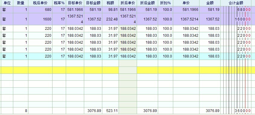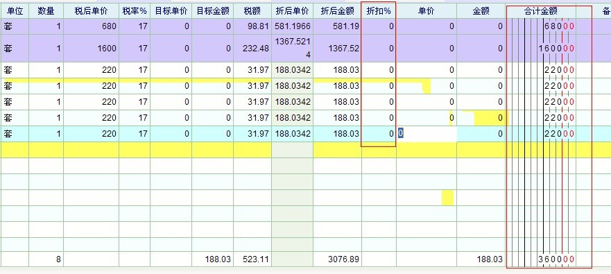他只是“单价”和“金额”进行了变动,但这个单价和金额都显示的是为未税的金额。