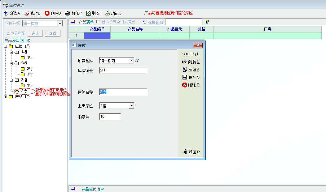 现在在2架下面增加下级库位1行