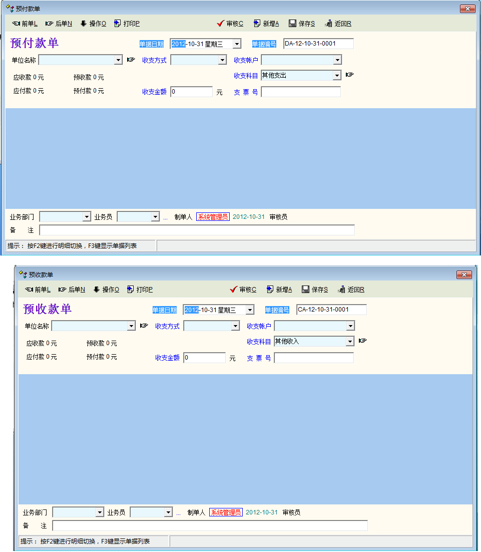 应收款单的操作金额和完成金额固定为0的。