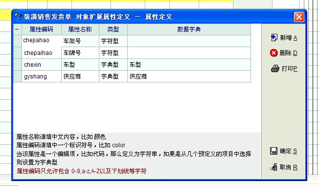 下表中“单据对象属性”是在销售发货单内自定义的。