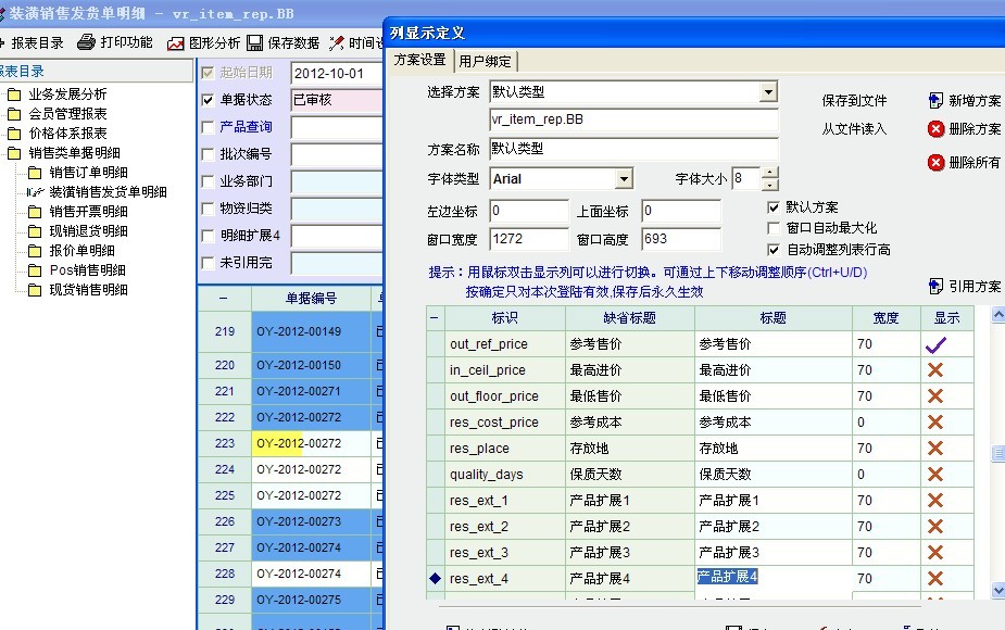 这张是在销售报表中所显示的数据,在显示定制中并没有上图中自定义的“单据对象属性”