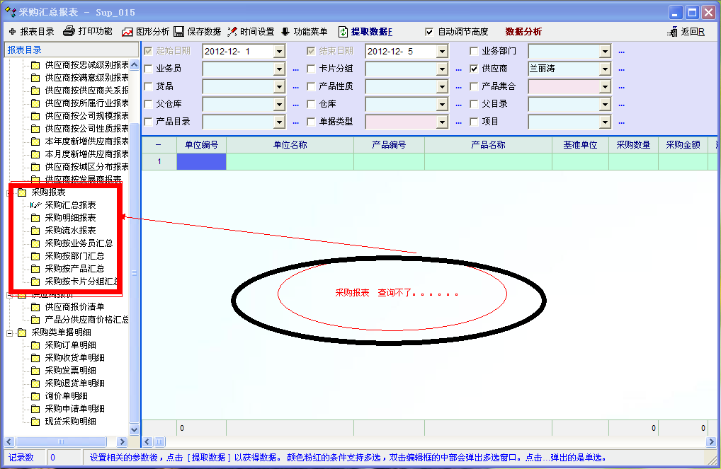 采购报表搜索不到单据的。 不知道其它的人 是不是这样。  单据明细有用。  报表没反应、