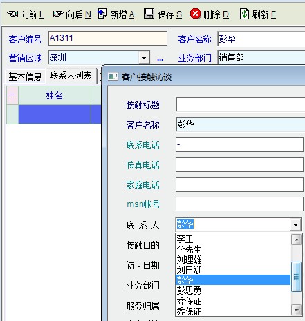 在客户客理-客户编辑-分类信息-客户联系-客户接触访谈介面,选择当前公司有多个人联系人进行联系的时候,联系人下拉菜单里面会记录之前打开过其他客户里的联系人,而不是唯一显示当天客户里的所有联系人,希望老师能改进!