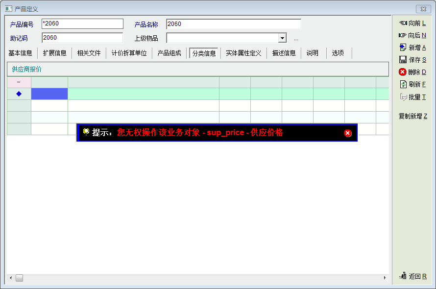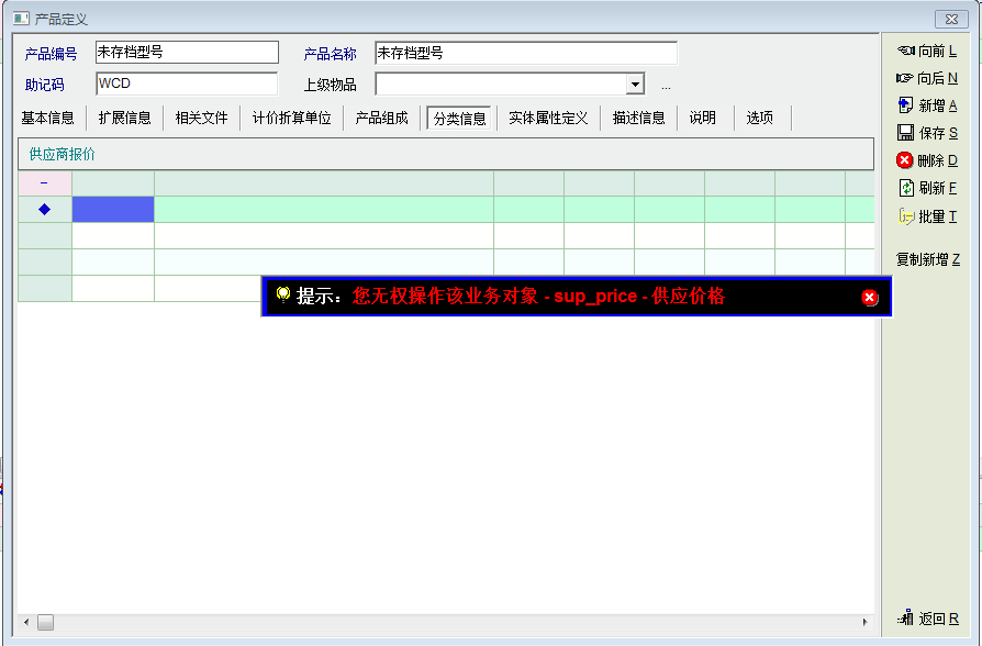 讨论_产品定义中分类信息中的供应商报价无法授权_产供销